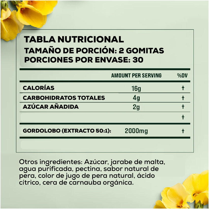 Estas gomitas de gordolobo son suplementos dietéticos diseñados para apoyar la salud pulmonar, y tienen al gordolobo como ingrediente clave, en una conveniente forma de gomita.