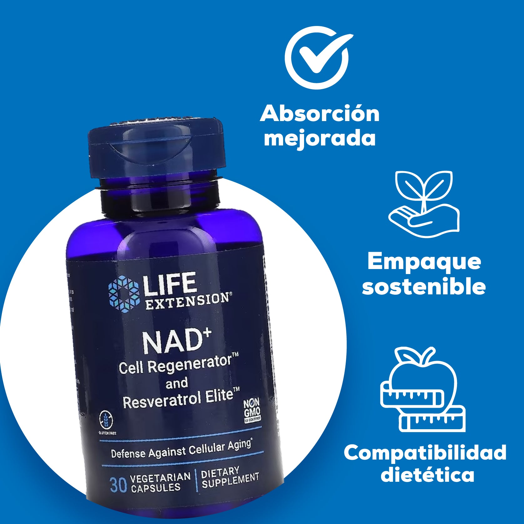 Este suplemento alimentario combina 300 mg de ribósido de nicotinamida NIAGEN® con trans-resveratrol ultrabiodisponible y fitonutrientes como la quercetina y la fisetina, creando una fórmula única para promover la longevidad, energía celular y combatir la fatiga general. Ideal para quienes buscan defensa contra el envejecimiento a nivel celular.