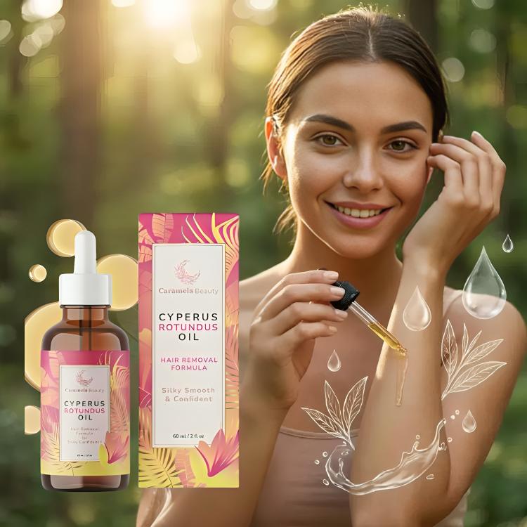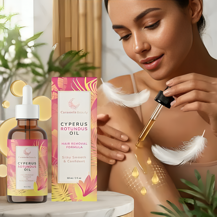 Elige el Aceite de Cyperus Rotundus de Caramela Beauty porque es la solución natural y efectiva para una reducción progresiva del vello. No solo te ayuda a que el vello crezca más fino y lento, sino que también transforma tu piel, dejándola "Silky Smooth & Confident" y libre de la irritación que causan otros métodos. Es cuidado avanzado con resultados duraderos.
