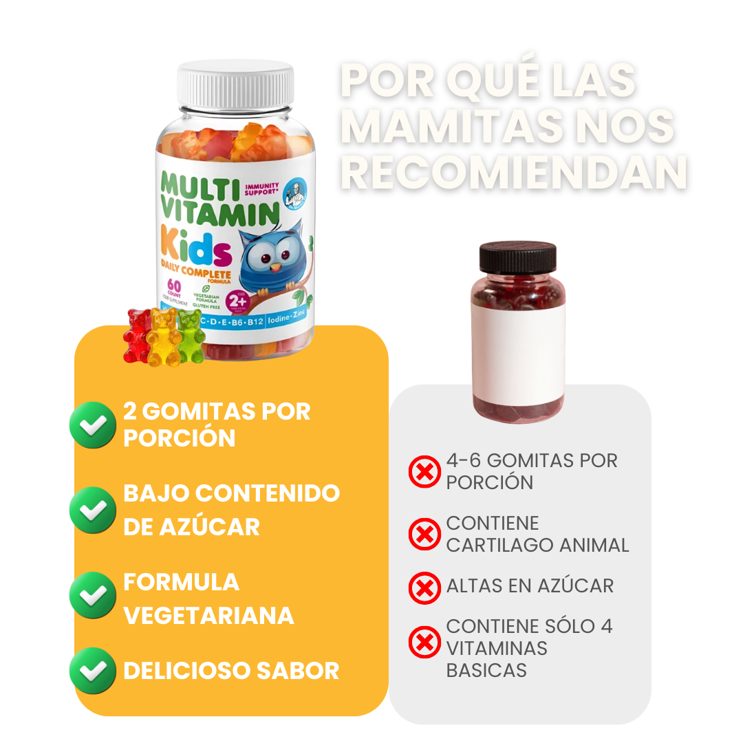Porque es el único suplemento que combina confianza médica y sabor irresistible. Mientras otras marcas usan rellenos de gelatina animal y exceso de azúcar, nosotros ofrecemos una fórmula 100% vegetariana a base de pectina natural, libre de gluten y alérgenos. Elegir Dr. Moritz es garantizar que tu hijo reciba 14 nutrientes esenciales sin las batallas diarias; es la tranquilidad de saber que están protegidos con un producto limpio, seguro y diseñado específicamente para que ellos quieran tomarlo.