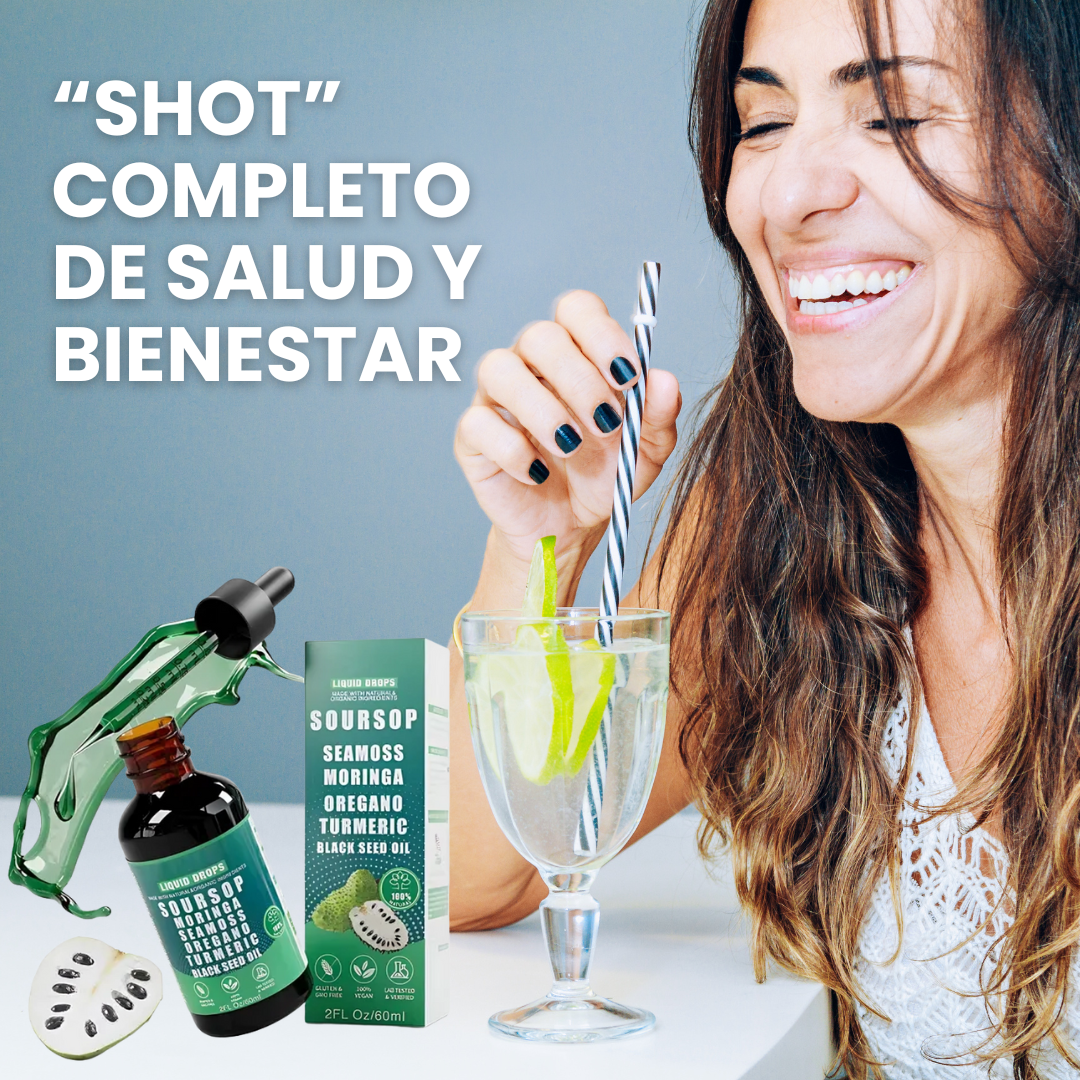La respuesta es la Sinergia Imparable. Mientras otros productos ofrecen un solo ingrediente, nuestras "LIQUID DROPS" concentran 7 de los superalimentos más poderosos y probados del mundo, como la Guanabana, Musgo Marino y Aceite de Semilla Negra, en una fórmula líquida de máxima absorción. Elije la fórmula que trabaja más inteligentemente por tu salud. Es la potencia de la naturaleza, simplificada para tu vida diaria.