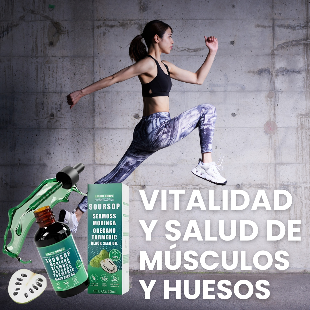 Este suplemento es la unión perfecta de la naturaleza: Guanabana, el guardián celular; Musgo Marino, tu fuente de 92 minerales esenciales; Moringa, el motor de energía; y el trío antiinflamatorio de Cúrcuma, Orégano y Aceite de Semilla Negra. Juntos, potencian tu inmunidad, combaten la inflamación y recargan tu vitalidad desde el núcleo celular. ¡Es nutrición integral y protección en cada gota!