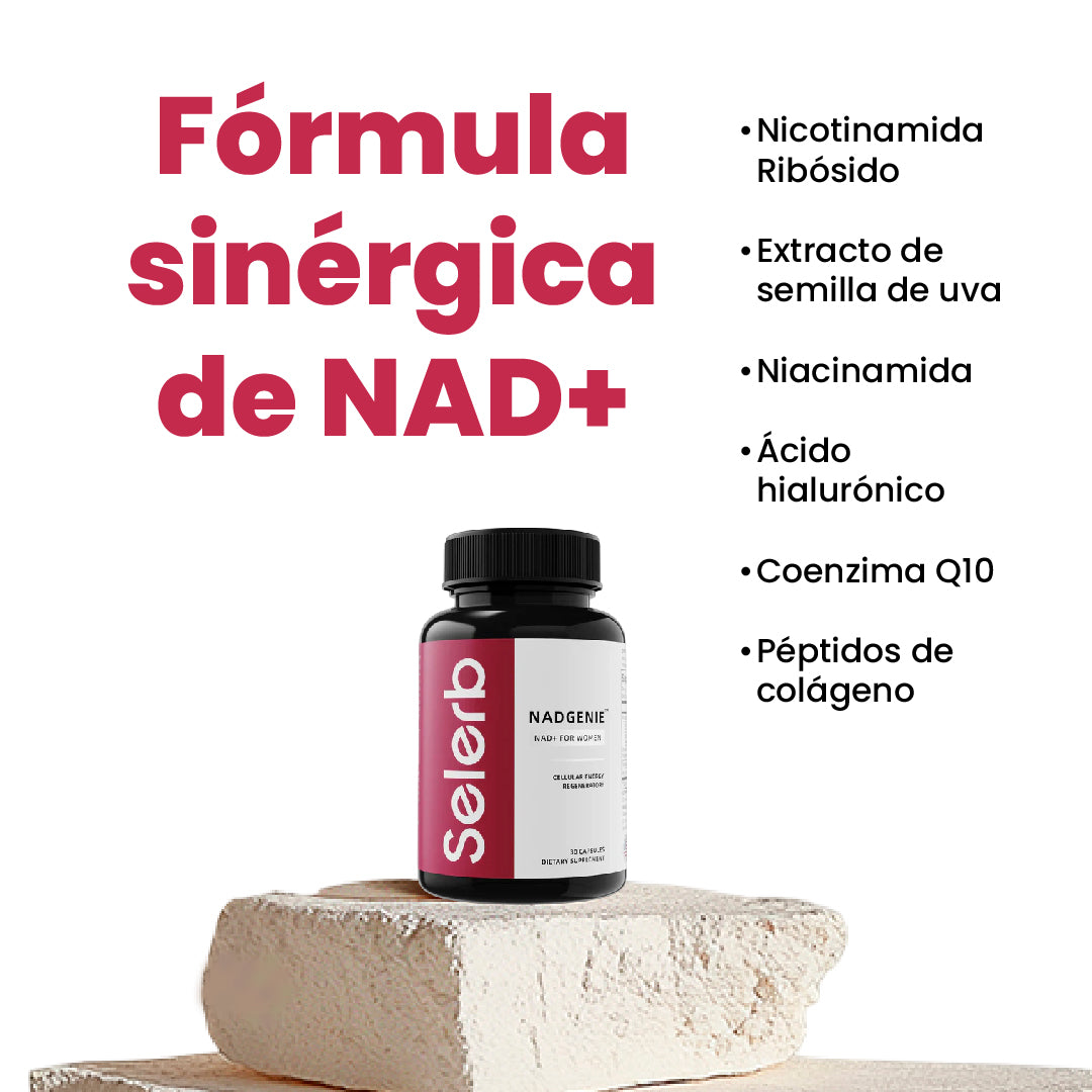 Impulsa tu bienestar y energía femenina con NADGENIE – NAD+ XTREME™ COMPLEX PARA MUJERES, una fórmula avanzada diseñada especialmente para mujeres que desean sentirse radiantes, equilibradas y fuertes todos los días.